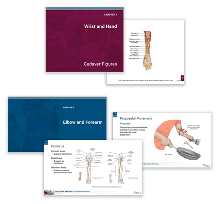 As a Functional Anatomy for Occupational Therapy  instructor, you’ll gain easy access to a full suite of resources that help you create dynamic, multi-faceted lessons with ease. From PowerPoint presentations and a vast image library to unique classroom activities, these resources save you time and capture your students’ attention.
